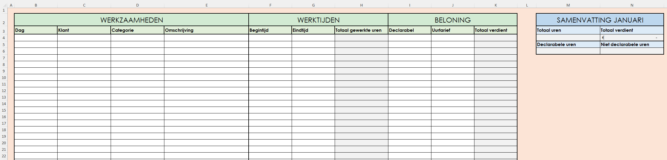 Urenregistratie: Een eenvoudige template om je uren te registreren.
