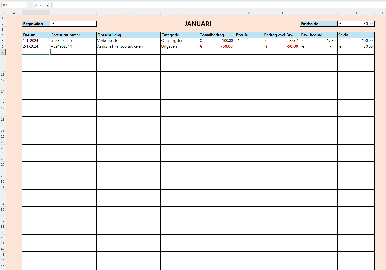 Een kasboek helpt je om overzicht te houden op je inkomsten en uitgaven, maar het is geen vervanging voor een volledig boekhoudprogramma. Na je aankoop krijg je toegang tot twee verschillende Excel templates. Je kunt kiezen tussen het invoeren van gegevens per maand of per kwartaal.
